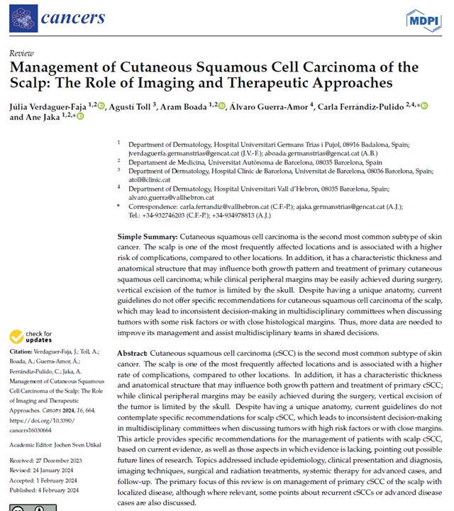 本综述主要关注头皮原发性鳞状细胞癌的局部性疾病治疗,但在相关情况下,也会讨论一些关于复发性鳞状细胞癌或晚期疾病病例的观点。
