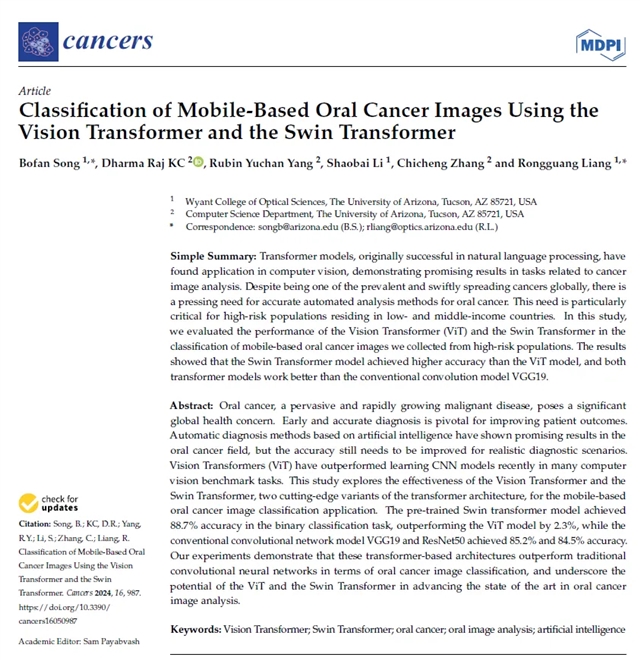 基于Transformer的架构在口腔癌图像分类方面优于传统的卷积神经网络,并凸显了ViT和Swin Transformer在推动口腔癌图像分析领域取得最新进展方面的潜力。