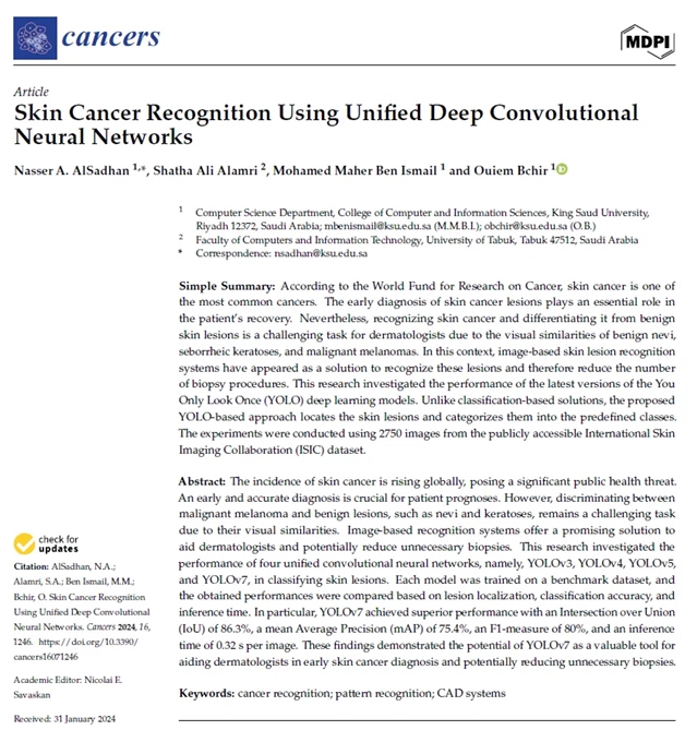 本文研究结果表明,YOLOv7可以成为一种有价值的工具,帮助皮肤科医生进行早期皮肤癌诊断,并有可能减少不必要的活检。