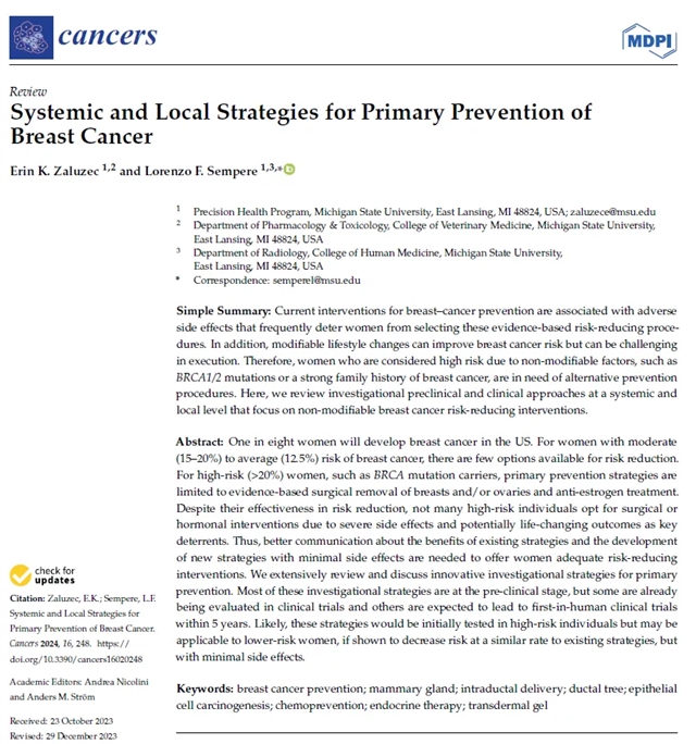 本文回顾了系统和局部层面的研究性临床前和临床方法,重点关注不可改变的乳腺癌风险降低干预措施。