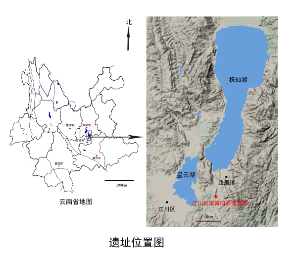 甘棠箐遗址位于云南省江川县,坐落于抚仙湖南岸约5公里处。遗址发现于1984年,1989年被首次发掘,2014年至2015年和2018年至2019年遗址被再次发掘,出土了丰富的石制品、动物化石、木质材料、植物种子。此次发表的材料全部来自新近两次考古发掘。