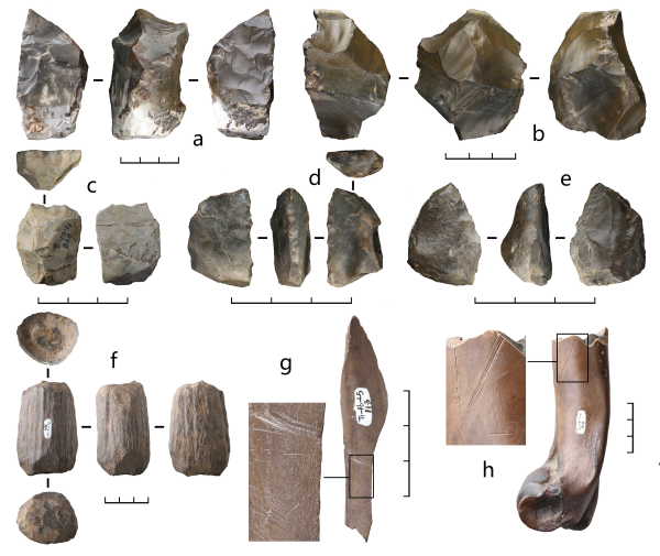 甘棠箐遗址出土的石器、软锤及动物骨骼上的切割痕迹