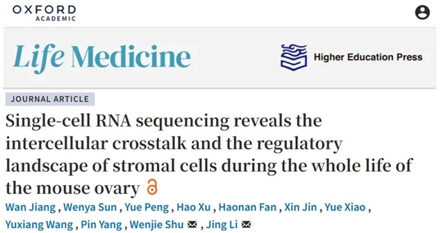 Life Med 李晶舒文杰等揭示小鼠卵巢全生命周期中基质细胞间相互作用与调控机制。论文标题:Single-cell RNA sequencing reveals the intercellular crosstalk and the regulatory landscape of stromal cells during the whole life of the mouse ovary