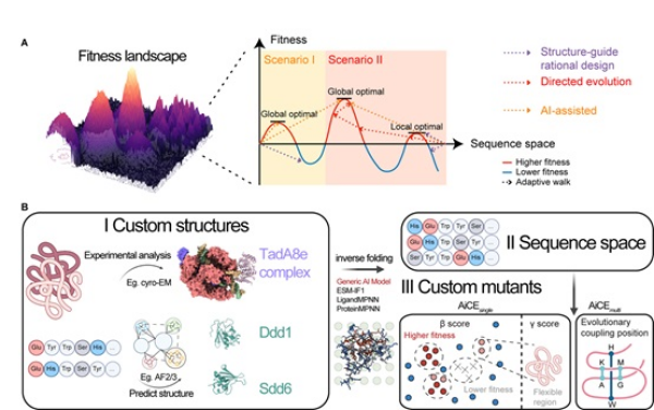 近日,中国科学院遗传与发育生物学研究所高彩霞团队基于整合的结构与进化约束的通用逆折叠模型,开发出新型人工智能蛋白质工程计算模拟方法AiCE(AI-informed Constraints for protein Engineering)。这一方法无需训练专属人工智能模型,即可实现蛋白质高效进化模拟和功能设计。该团队利用AiCE对多种基因编辑工具进行进化优化,实现了效率和精度的快速提升。