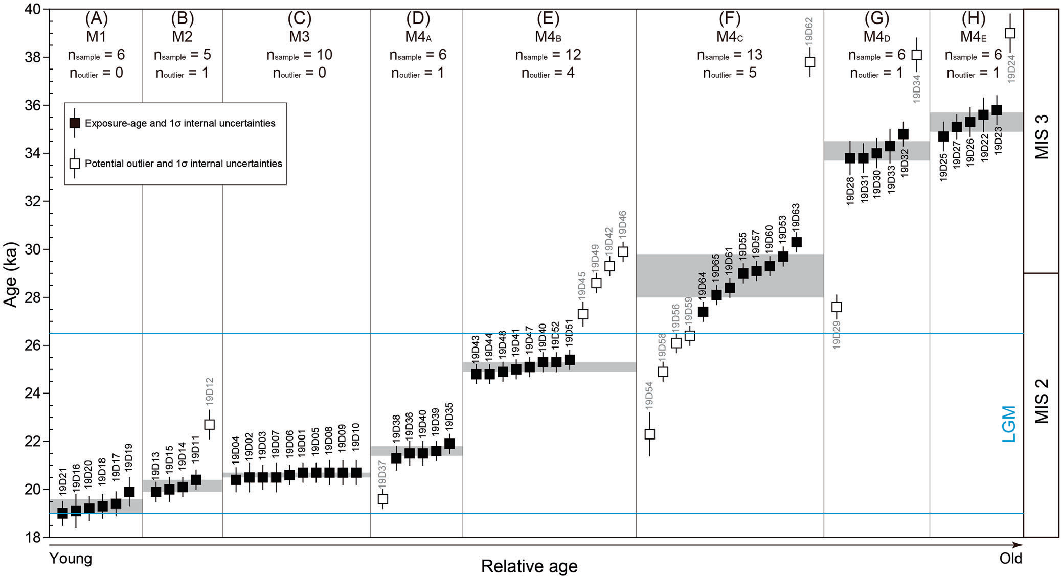 斯布曲冰川漂砾10Be暴露年龄及冰碛垄相对年龄和绝对年龄。地球环境所供图