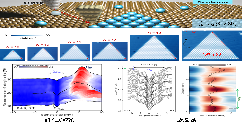 在笼目金属CsV3Sb5表面上原子级精准构筑的碱金属Cs人工量子结构、演生准二维超导态和配对密度波