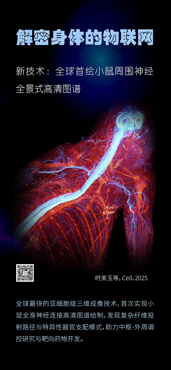 1、脑图谱赋能神经环路功能解析。近期成果在神经联接图谱绘制技术,感知、意识与记忆等关键脑功能的神经环路解析上取得系列突破。在技术开发方面,基于此前自主研发的首次实现猕猴全脑微米分辨三维成像的超高速VISoR技术,进一步开发了blockface-VISoR成像系统,结合优化的全身透明化流程ARCHmap,实现了40小时内成年小鼠全身均一微米分辨三维成像,解析了全身不同类型周围神经的精细结构和单纤维投射路径,建立了周围神经联接图谱研究的新范式;率先建立灵长类大脑神经细胞类型特异性标记、神经活性调控及观测的工具集,突破了传统转基因模型的局限性,为探讨灵长类脑结构、脑认知及未来精准靶向脑疾病治疗提供了关键技术,标志着灵长类脑科学进入了精准细胞类型研究新阶段。在感知方面,利用病毒示踪、亚微米分辨连续精准三维成像技术(fMOST)和单细胞重构技术,全面揭示了小鼠脊髓投射神经元与脑内中继神经元的投射模式及联接规律,发现其通过“并行-发散-汇聚”模式构建“信息高速公路”,为理解疼痛、瘙痒、触觉等的感知机制提供全新结构框架。在意识基础方面,发现猕猴屏状核内部在前后轴方向存在广泛联系,与小脑外所有皮层和皮层下脑区相连,是大脑的连接中枢,为理解灵长类意识产生的多模态信息整合机制奠定了结构基础。在认知决策的神经结构基础方面,利用自主研发的大体积猕猴全脑亚微米分辨连续精准三维成像技术(LV-fMOST)和Gapr神经元追踪系统,重构了猕猴前额叶皮层中主要亚区的2231个投射神经元,揭示了猕猴前额叶皮层存在“精简高效”神经联接模式,实现了精准、模块化的信息处理策略,为剖析灵长类高级认知功能的神经机制提供了基本框架。