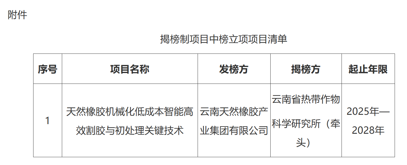 云南省揭榜制项目中榜立项项目清单公示。根据《云南省科技揭榜制项目和资金管理办法》(云财规〔2023〕12号)、《云南省科技计划项目管理办法》(云科规〔2022〕5号)等规定要求,经评审论证、项目公示等程序,现将揭榜制项目中榜立项项目清单(详见附件)予以公告。
