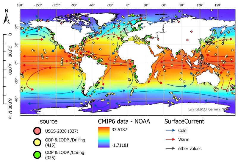 海洋甲烷渗漏与冷暖洋流活动的全球空间分布图。研究团队供图