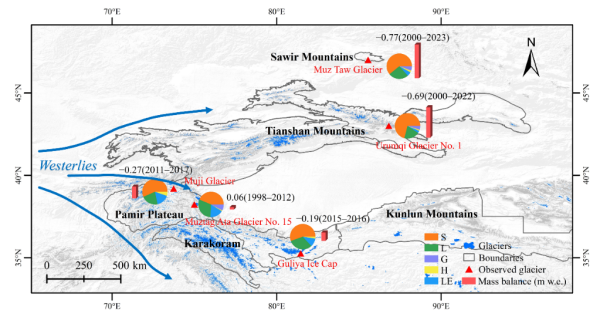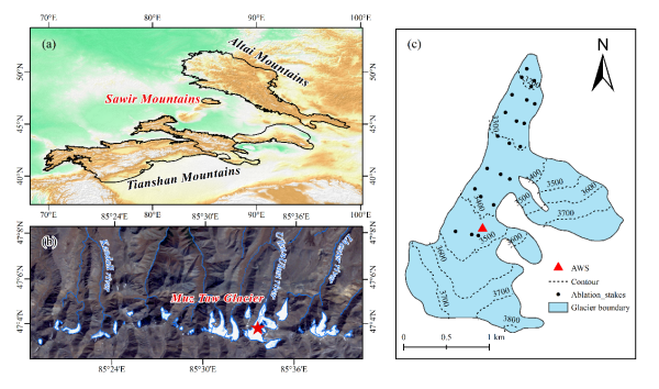 相关研究成果以Mass balance reconstruction of a reference glacier in central Asia during 2000–2023: Integrating simulation and in-situ measurements为题,发表在Advances in Climate Change Research上。研究工作得到国家自然科学基金、中国科学院相关项目等的支持。