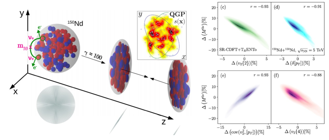 无中微子双贝塔衰变矩阵元与重离子碰撞观测量之间的关联性。研究团队供图