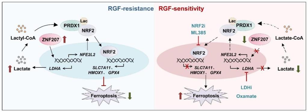 本研究揭示了ZNF207介导的蛋白质乳酸化修饰在瑞戈非尼耐药中的关键作用,阐明了瑞戈非尼耐药的作用机制,提出了靶向抑制ZNF207/PRDX1lac/NRF2信号轴的激活可作为一种有效克服肿瘤治疗耐药的干预策略。(来源:中国科学报 李媛)