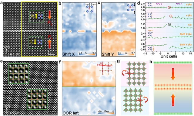 无铅铁电材料铁性序调控取得系列进展。 铁电材料中铁电畴壁是极化取向不同畴区的分界线,其结构和铁性序的特征区域一般为原子尺度,和铁电材料自身的对称性密切相关;不仅具备二维界面优势,更展现出与本征极化态显著不同的结构和特性,成为界面物性调控与功能集成的重要载体。