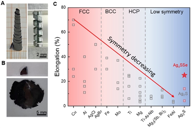 相关发现阐明了低对称性Ag2S基多晶半导体塑性变形的微观结构机制,为探索新型塑性半导体、丰富物质塑性变形理论打下了基础。