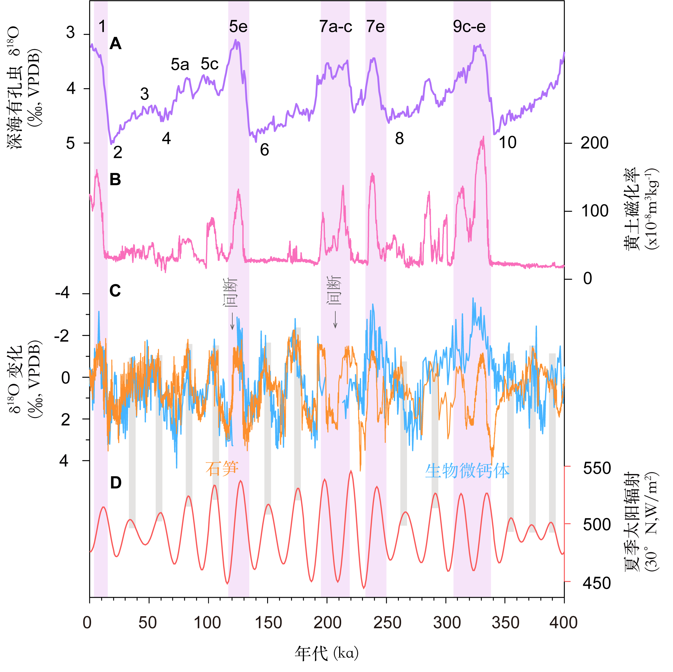 为此,研究团队创新性地利用黄土沉积中的一种次生碳酸盐——生物微钙体(由植被根细胞被钙化后形成的微小碳酸钙颗粒,主要形成于夏季),重建了过去40万年以来夏季降水δ18O变化历史。