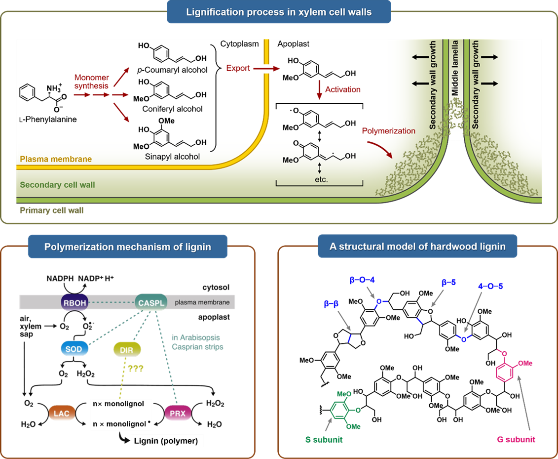原文图 2 木质化过程、机制及木质素结构模型