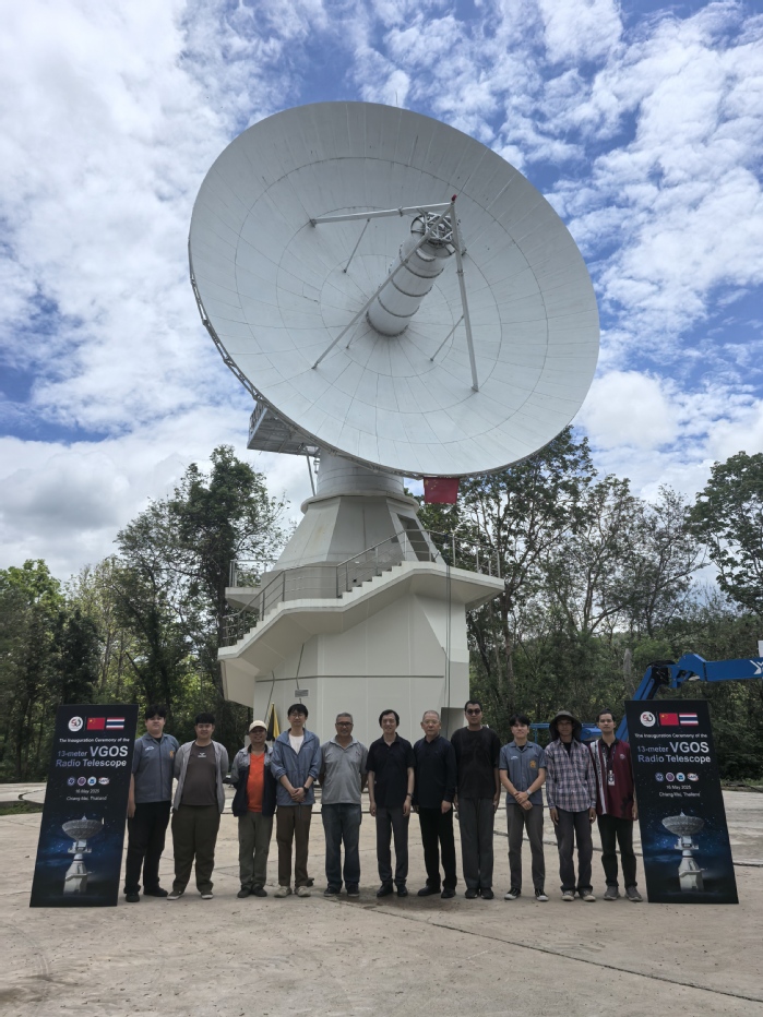 5月16日,泰国清迈13米射电望远镜落成启用,项目团队代表在望远镜前合影。