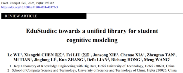 FCS 文章精要 合肥工业大学吴乐等,EduStudio:学生认知建模统一框架。论文标题:EduStudio: towards a unified library for student cognitive modeling