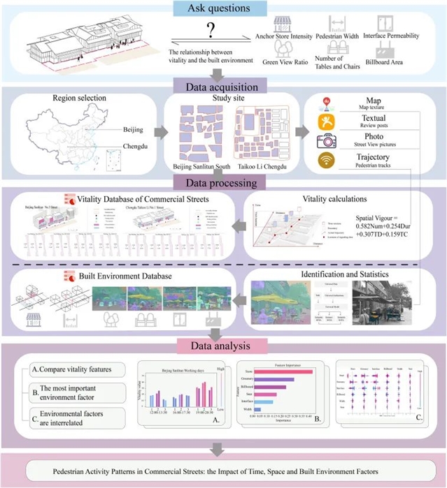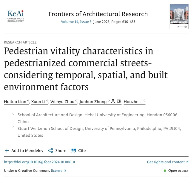 FoAR 时间、空间与建成环境要素下商业步行街的行人活力特征。论文标题:Pedestrian vitality characteristics in pedestrianized commercial streetsconsidering temporal, spatial, and built environment factors