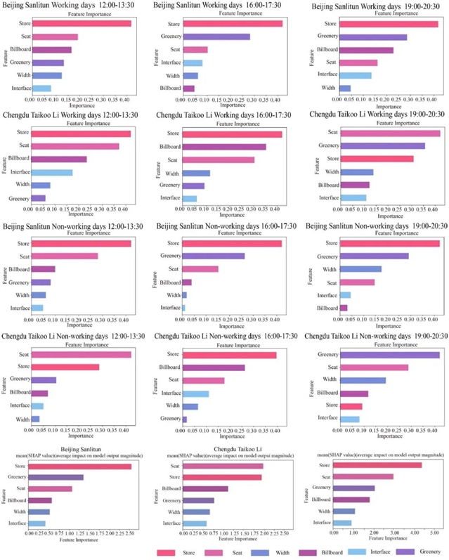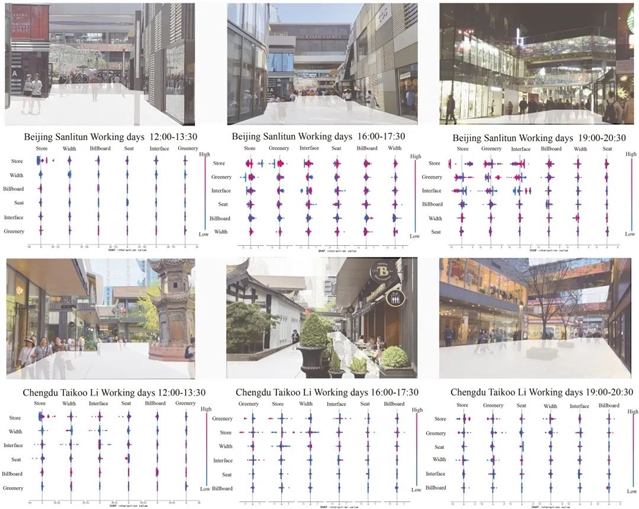 4.4. Spatiotemporal heterogeneity of the combined impact of built environment factors in pedestrianized commercial streets / 步行商业街建成环境因素联合影响的时空异质性