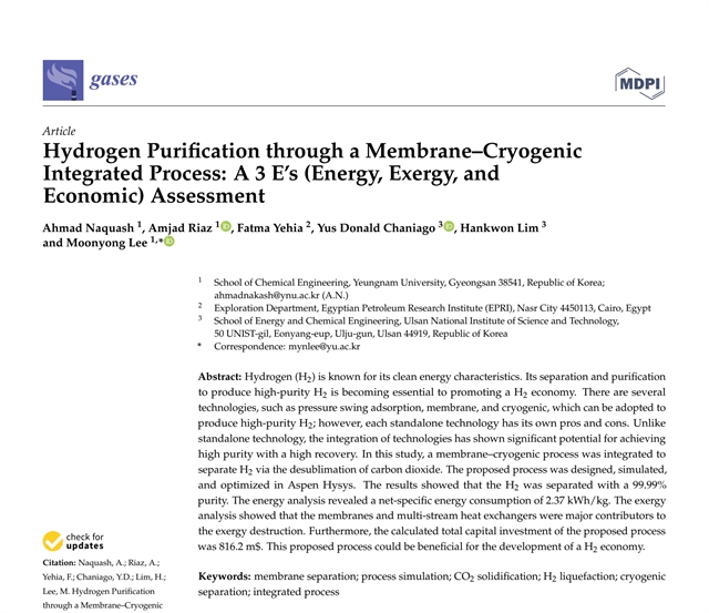 2. Hydrogen Purification through a Membrane–Cryogenic Integrated Process: A 3 E’s (Energy, Exergy, and Economic) Assessment