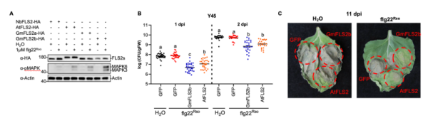 研究发现,将拟南芥FLS2转入本式烟草后,该植物获得了识别flg22Rso的能力,并可激活免疫信号通路。异源表达的AtFLS2可与本式烟草中的内源SERK蛋白相互作用,形成功能性受体复合物。这种互作激活免疫反应并限制细菌增殖,证明AtFLS2介导的flg22Rso识别足以激起保护性免疫反应。