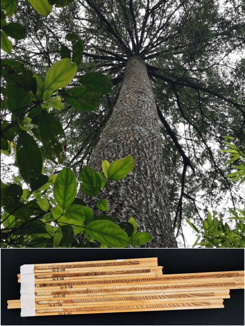 南岭华南五针松(树龄>200年)与树轮样品。张干、王旭 摄