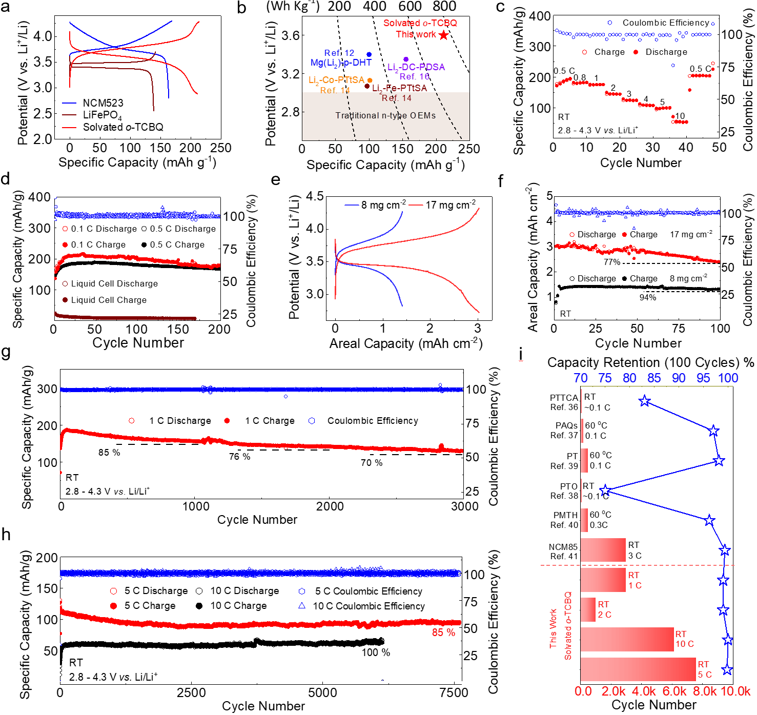 图4:o-TCBQ在Nb5+/Al3+异核固态阴极溶液中的电化学性能表现。
