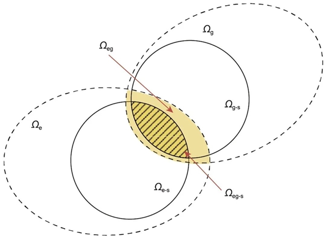 图1 IEGS-SSR与IEGS静态安全域。Ωe、Ωg与Ωeg为SVSR、SGSR与IEGS-SSR;Ωe-s、Ωg-s与Ωeg-s为静态电压稳定域、静态气压安全域与IEGS静态安全域。