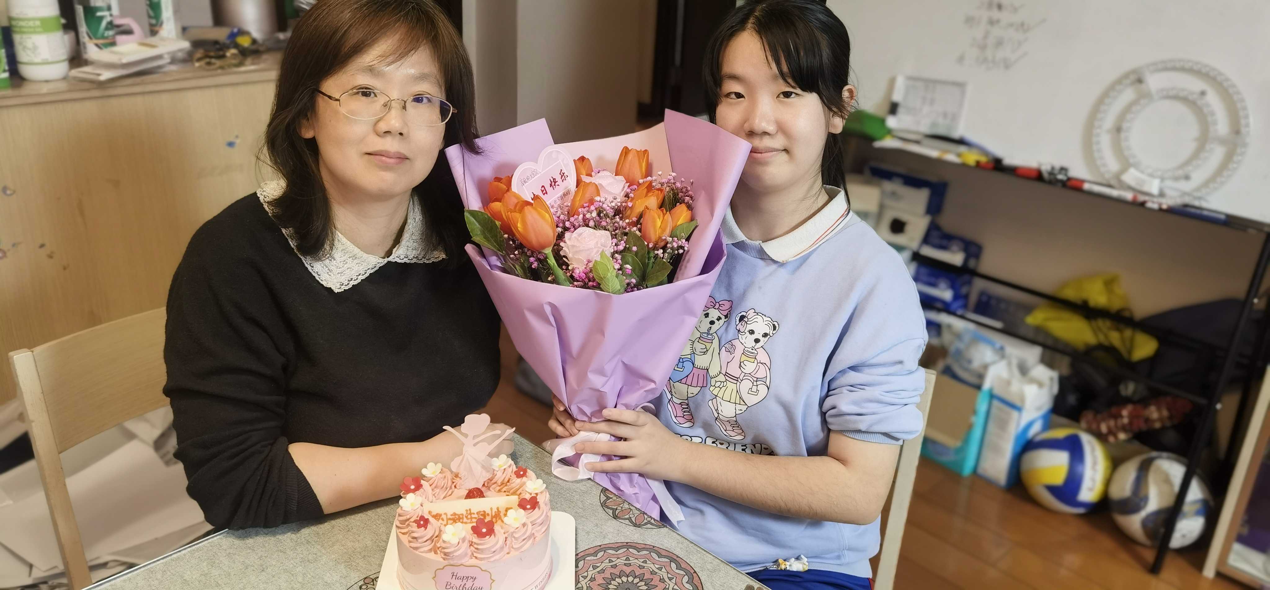 齐欣(左)和女儿在一起。受访者供图