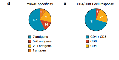 团队此次开展了一项入组25名患者(其中有20名胰腺癌和5名结直肠癌患者)的1期临床试验。这些患者已完成标准治疗,但血液中仍有癌细胞残留迹象。他们接受了ELI-0022P疫苗免疫疗法,该疗法通过将KRAS突变肽靶向淋巴结,帮助免疫系统识别和攻击KRAS突变癌细胞。经过平均近20个月的随访期,68%的受试者出现了对KRAS突变肿瘤蛋白有特异性的强效T细胞应答。具体地说,T细胞应答最强的患者比T细胞应答较弱的患者活得更久,无癌生存期也更长。