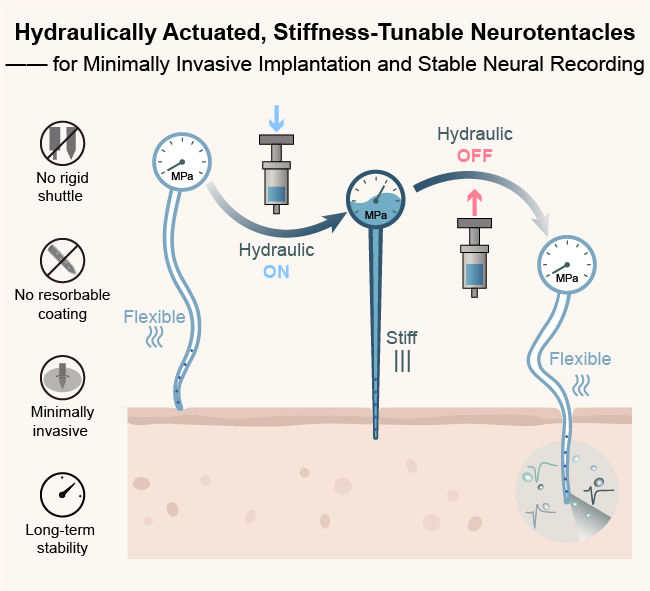 近日,相关研究成果以Stiffness-tunable Neurotentacles for Minimally Invasive Implantation and Long-Term Neural Activity Recordings为题,发表在《先进科学》(Advanced Science)上。