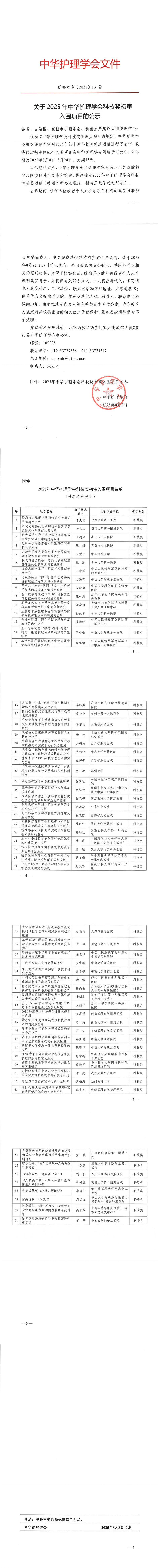 关于2025年中华护理学会科技奖初审入围项目的公示