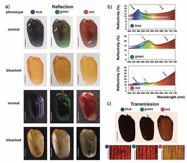 棉花弧丽金龟三种色型(蓝色、绿色和红色)的光学特性