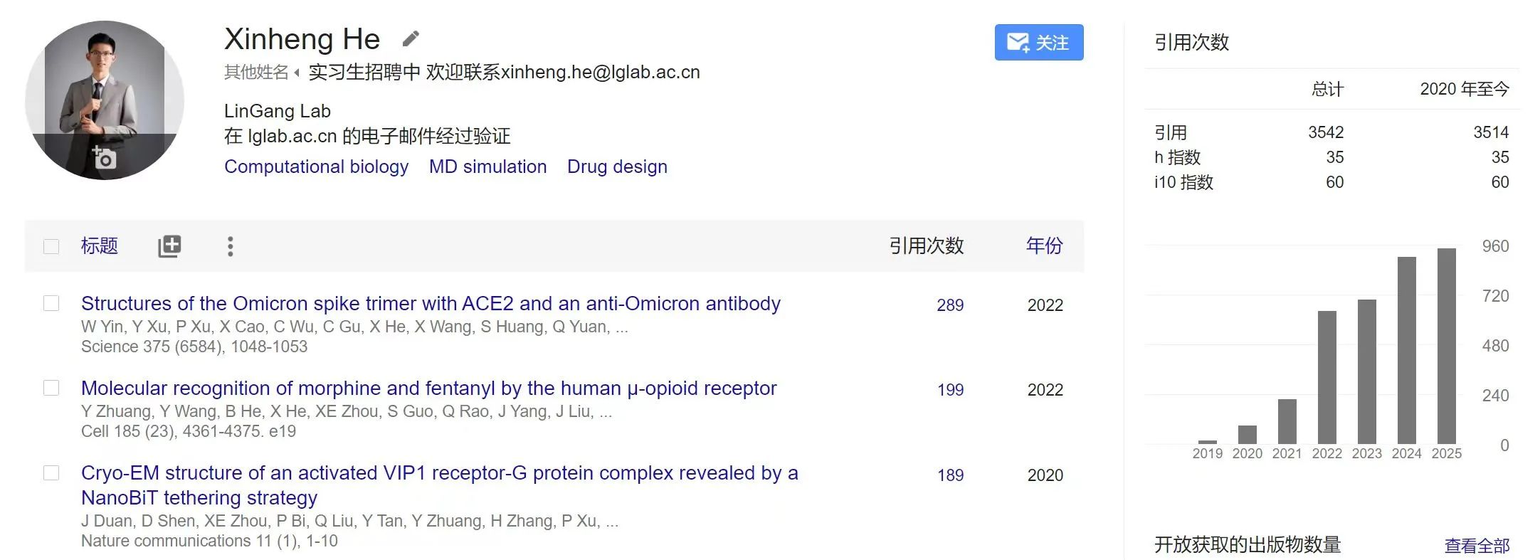 上海药物所不仅拥有完整的新药研发体系,也是国内最早开展CADD的单位之一,有着丰富的计算和实验资源以及良好的学术氛围。在这里,何欣恒的成长更为迅速。在专注自己课题的同时,他也通过参与合作项目,不断拓宽自己的认知边界,突破能力上限。