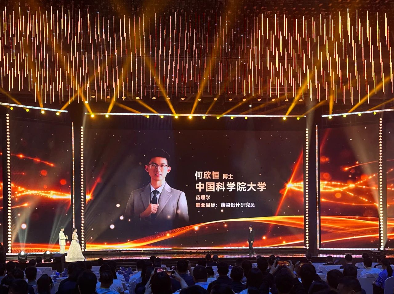 在这场吸引了来自全国2763所高校的1507万人报名的比赛中,何欣恒获就业赛道高教研究生组金奖。他作为5位选手代表之一,在总决赛颁奖仪式上进行了个人风采展示。