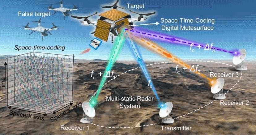 基于空时编码超表面的多基地雷达干扰方法。西安电子科技大学供图