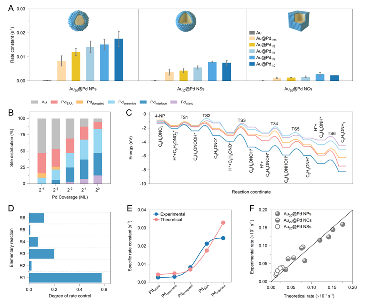 图3:Au@Pd表面不同Pd位点在4-硝基苯酚加氢反应中的催化活性。