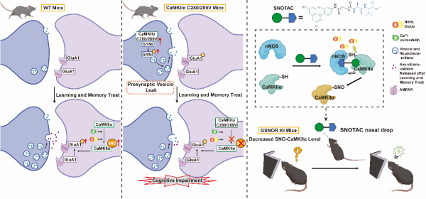 中国科学院生物物理研究所陈畅研究组与中国药科大学黄张建研究组合作,发现NO亚硝基化修饰CaMKIIα是学习记忆的新分子机制,并开发出区别于传统NO供体的精准亚硝基化调控分子SNOTAC,为改善记忆损伤带来新治疗策略。