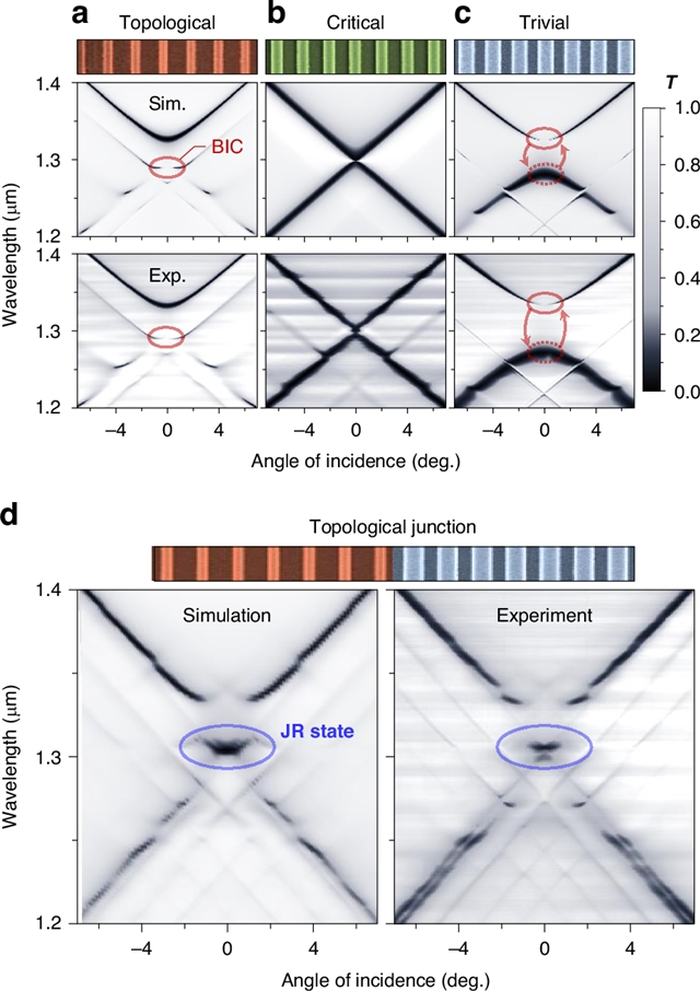 图3. 展示拓扑相变和 Jackiw-Rebbi 态出现的角度分辨透射光谱