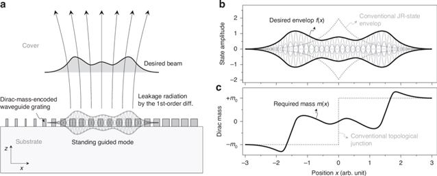图1. 超表面中拓扑光束整形和Jackiw-Rebbi态工程原理