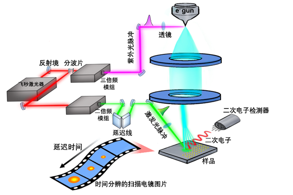 图1. 通过超快扫描电子显微镜探测光生载流子的示意图