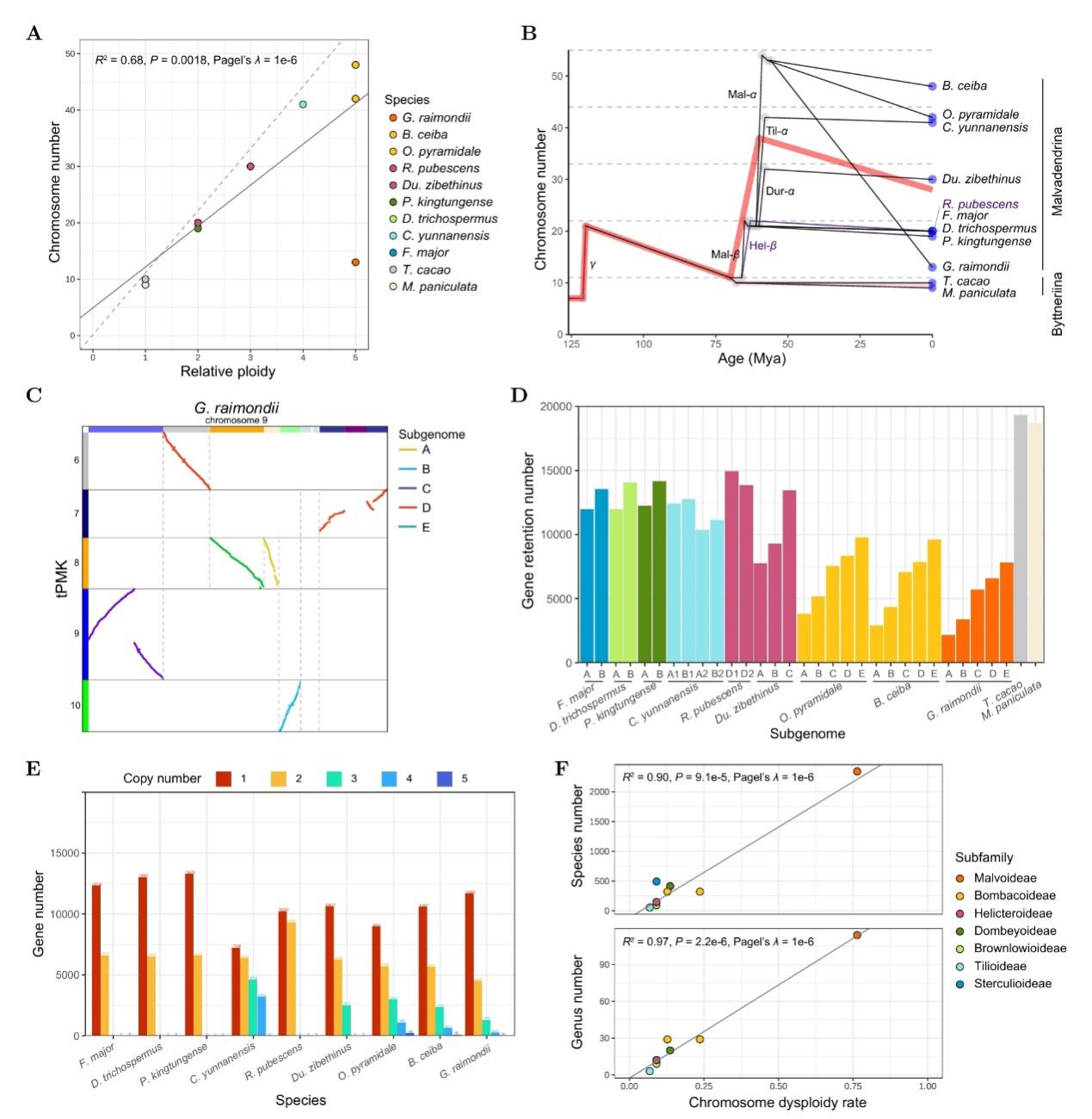 该研究解析了锦葵科复杂的古多倍化及二倍化演化历史,并发现了支持二倍化与古多倍体演化成功之间的关联证据,为理解植物多样性起源与演化提供了新的视角。