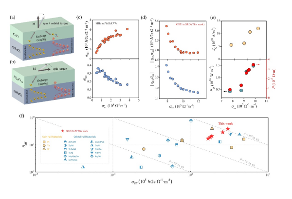 针对上述难题,科研人员选取4d过渡金属氧化物SrRuO3为研究体系,发现该体系中的轨道霍尔效应表现出全新的非传统标度律:随着材料中缺陷散射的增强即电导率降低,其轨道霍尔电导率和轨道霍尔角能协同增大。这为解决传统自旋霍尔效应中自旋霍尔角与自旋霍尔电导率的固有制约提供了新途径,实现了一石二鸟的效果。