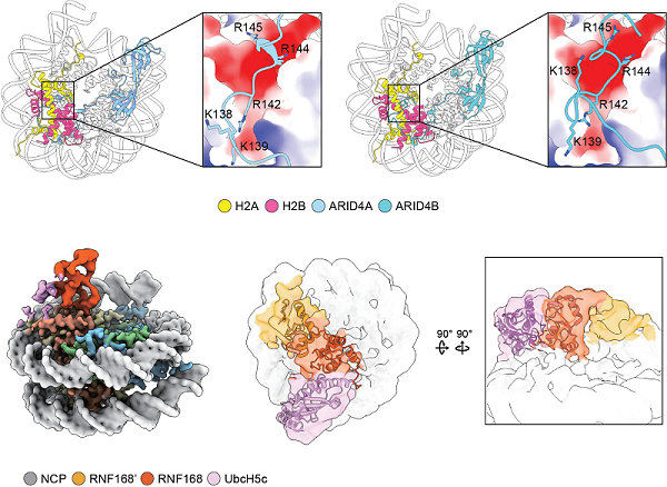 ARID4A/4B识别核小体与RNF168的二聚化增强核小体相互作用