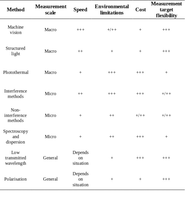本文最后讨论了测量目标与测量尺度之间的关联,总结了各种方法在尺度、速度、测量环境要求、成本、测量目标灵活性等方面的优缺点。