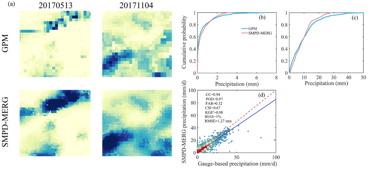 上述研究在提升卫星降水数据空间分辨率方面实现了技术突破,为开展高精度水文模拟、极端气象事件预警和区域水资源精准管理提供了数据支持,展现出应用前景与推广价值。