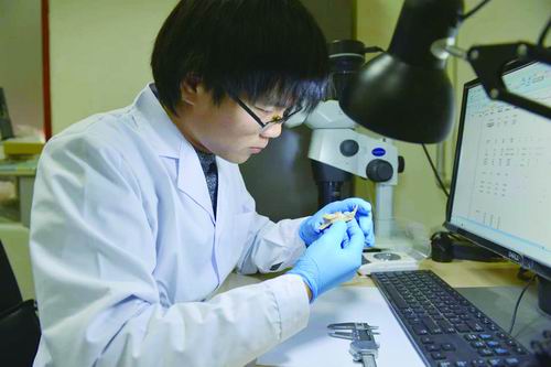 ③ 张东菊团队成员王建进行动物考古学分析。受访者供图