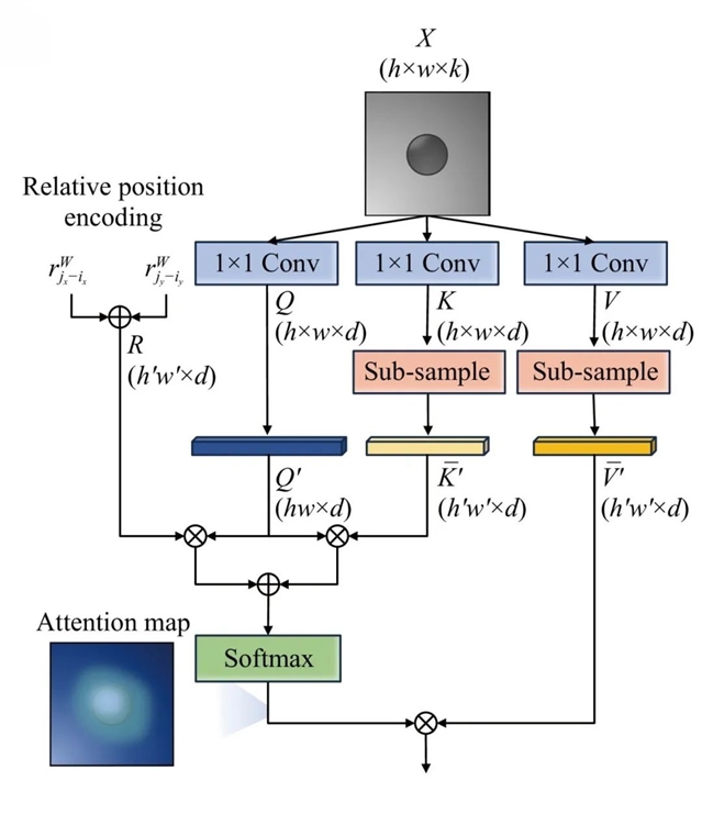 为了应对半导体缺陷图像中复杂多变、形状不规则以及尺寸各异的挑战,MT-former在模型架构中融入了先进的混合Transformer机制,并特别强调了高效自注意力模块(Efficient Self-Attention Module,ESAM)的应用,如图3所示。这种混合架构结合了卷积神经网络(CNN)在局部特征提取上的优势,以及Transformer在捕捉长距离依赖和全局上下文信息方面的强大能力,使得模型能够在更广阔的图像范围内建立像素间的关联性,从而更好地识别那些跨越较大区域或具有复杂非局部特征的缺陷。此外,MT-Former还巧妙地集成了Focal Loss,通过动态调整不同类别样本的权重,使得模型能够更加关注那些难学的、数量稀少的新型缺陷样本,确保即使在数据高度不平衡的情况下,模型也能对少数新型缺陷保持强大的识别能力。