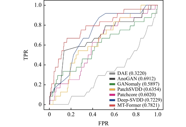 图4:展示了MT-Former与六种主流异常检测方法的性能对比